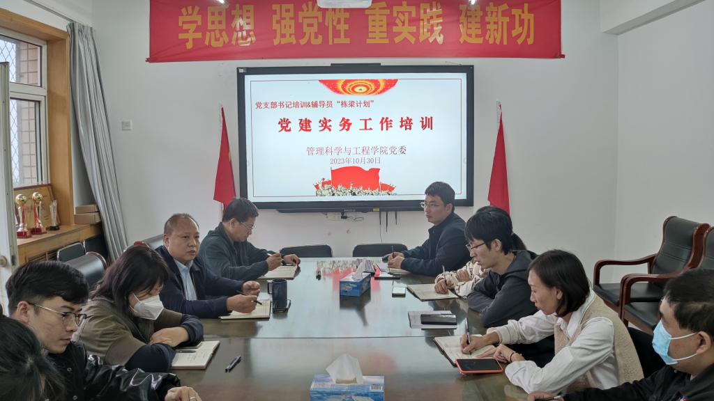 学院专职组织员宋智广围绕党的组织机构设置、组织换届选举、“三会一课”制度、组织生活会、民主评议党员、党员发展、党员组织关系转接、《党支部工作手册》填写等内容进行了系统讲解。