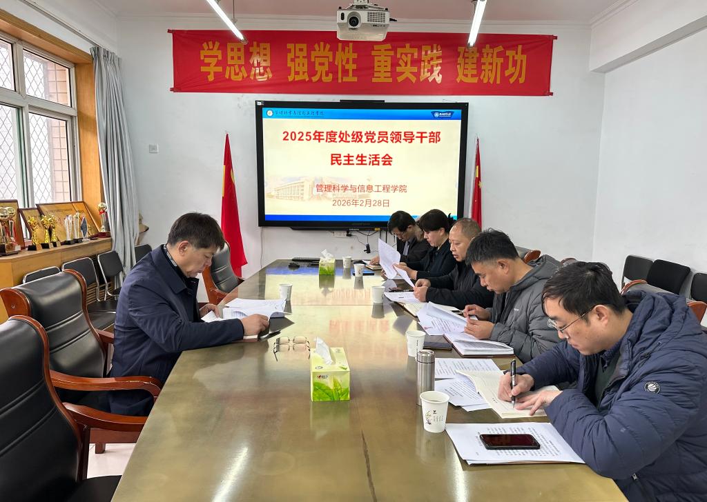 2月28日上午,学院召开2025年度处级党员领导干部民主生活会。校党委副书记王保军到会指导,学院党委书记王剑彪主持会议,学院领导班子成员参加。