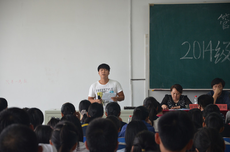 2014年9月22日,管理科学与工程学院隆重举行2014级新生开学典礼。学院党总支书记刘风长,院长王素君,副院长许世瑛,武彦斌,学院各教研室主任、老师,全体班主任老师及全体2014级新生出席了大会。大会由副书记张晓军主持。