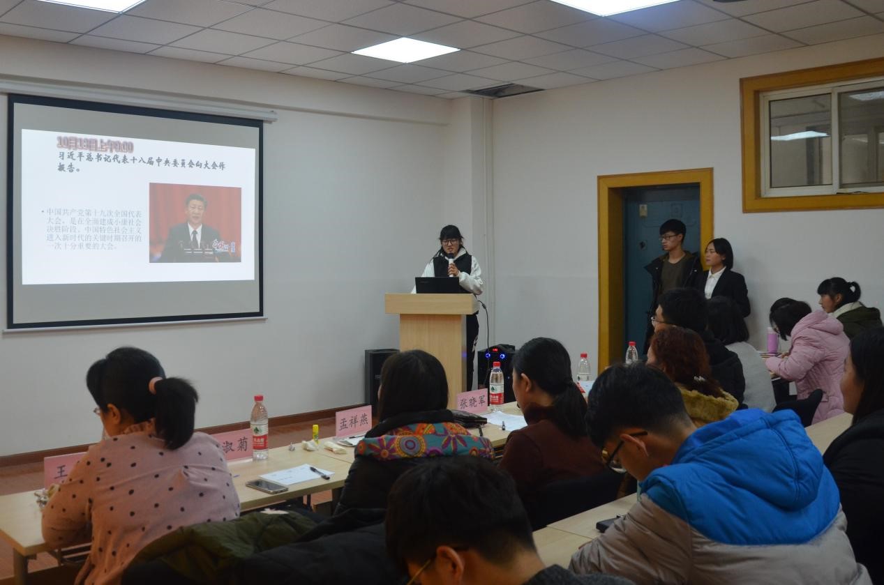 12月25日中午,管理科学与工程学院在第一教学楼408教室举办了学习十九大专题团日活动评比活动,学院党委副书记张晓军、团委书记宋智广以及全体辅导员老师到场并担任评委,各班级主要团学干部参加。