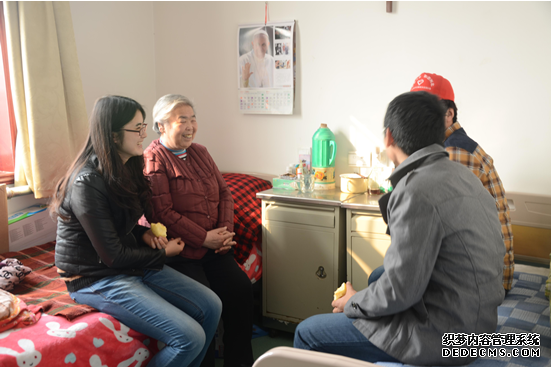 学院志愿者们到达进德之家后,受到了老人们的热烈欢迎。在与老年之家工作人员沟通之后,学院志愿者主动帮助老人整理内务,打扫卫生。同时,学院志愿者热情地与老人交谈并询问老人们的生活状况。志愿者们主动陪老人们聊天、唠家常,进德老年之家里萦绕着欢声笑语,场面融洽温馨。活动中,学院志愿者还为老人们演唱了《南泥湾》、《夕阳红》等经典歌曲,老人们在一旁不时跟着一起哼唱,志愿者们和老人们融入在一片欢乐祥和的氛围中。