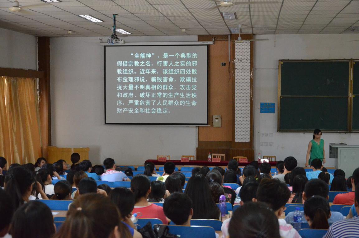2015年5月11日,学院领导班子和全体辅导员班主任共同召开了揭批全能神宣传教育活动工作部署会。院党委书记刘风长对本次宣传教育活动做了全面部署。随后各班辅导员将揭批“全能神”相关的文字资料发到班内每位学生的手中,带领学生以班为单位专门召开班会进行了认真学习。5月26日,学院又组织全院师生400余人在C225观看学习了“揭批‘全能神’”警示教育专题片,学院党委书记刘风长、副书记张晓军亲自参加,并全程参与。该警示教育专题片,以“识破邪教‘全能神’”、“‘全能神’如何拉人”等六个专题,从科学的角度全面揭露了“全能神”这一邪教的产生过程、本质和危害,一幅幅触目惊心的画面,一桩桩发人深省的案例,令在场的师生深刻认识到了“全能神”的危害性。活动后,各班又组织学生结合对“全能神”的看法进行了讨论,要求每人提交一篇学习心得体会。学生们纷纷表示,此次活动开展的很及时,意义重大,非常必要,帮助他们认识了全能神的真面目。