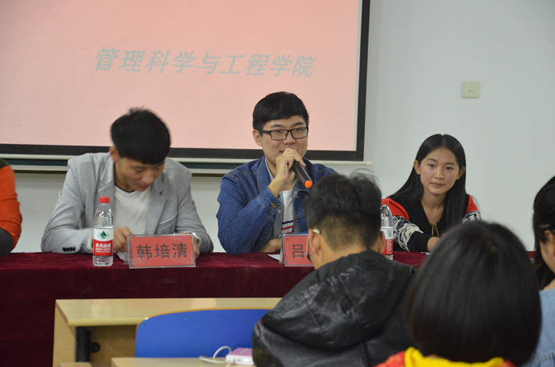 10月11日晚,管理科学与工程学院在A501教室举办2016年新老生交流会。学院13、14级优秀学生代表出席交流会,做了经验分享,16级全体新生参加。