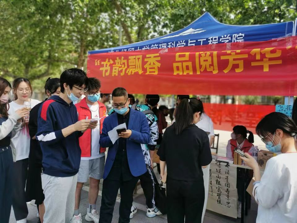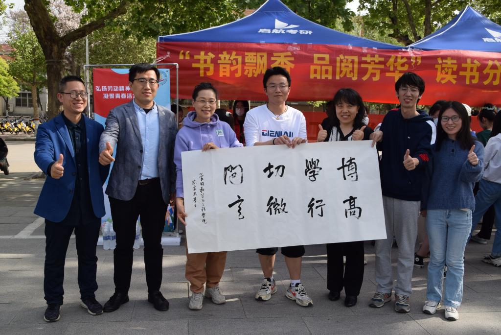 在图书馆西侧举办“书韵飘香,品阅芳华”为主题的读书分享志愿服务活动。