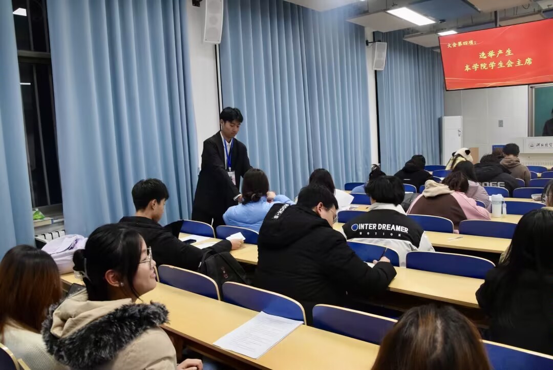 于三教A103教室召开第五次学生代表大会,共40名学生代表参加。
