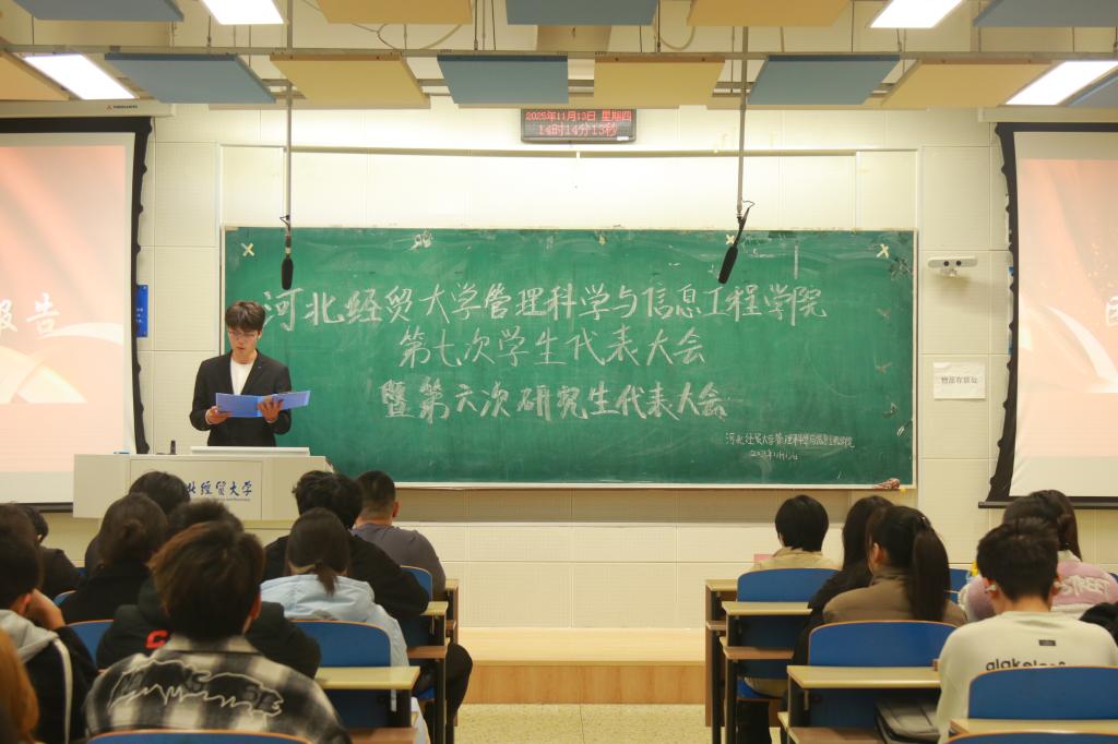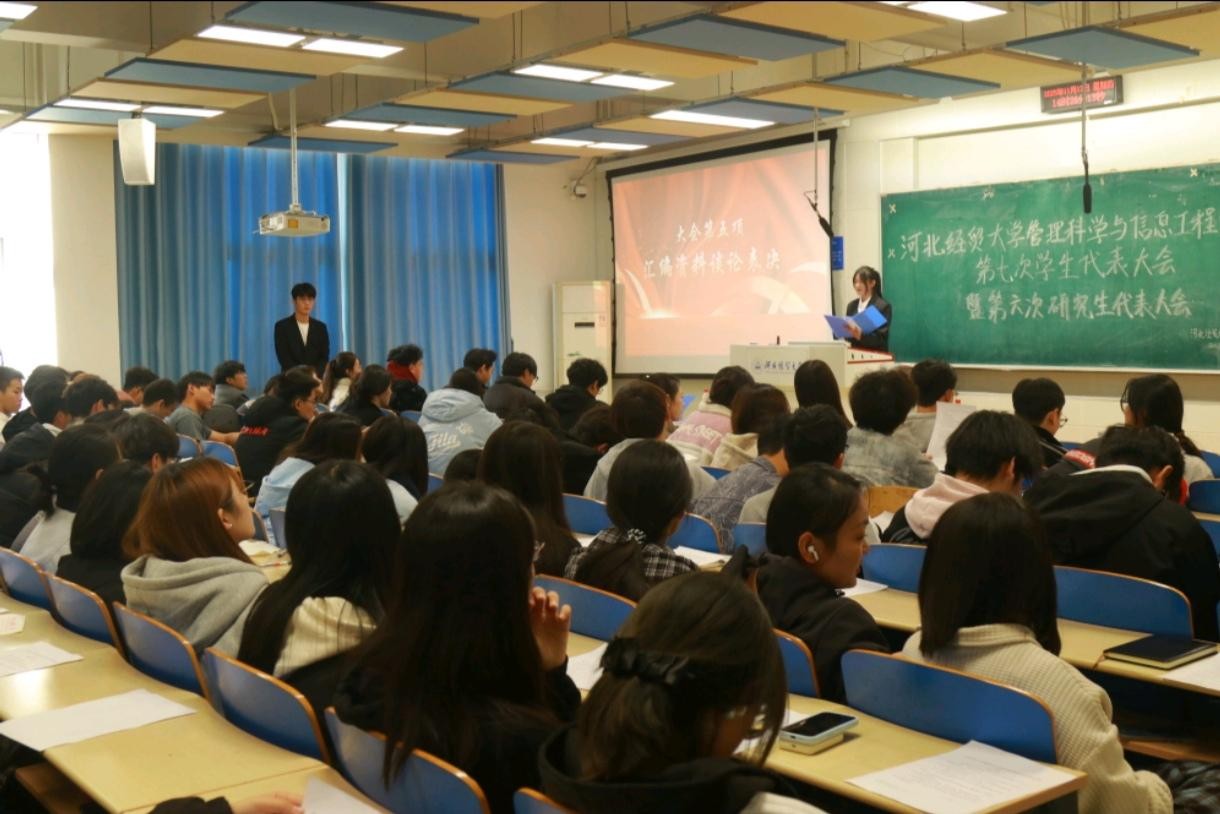 召开第七次学生代表大会暨第六次研究生代表大会。本次大会由办公室部刘潇晴主持,院团委书记梁旭辉老师、研究生会负责老师曹洋出席,来自各专业的105名学生代表参会。