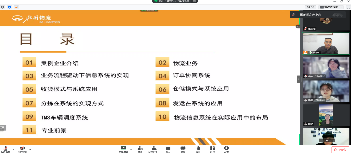 首先,宋总结合北国高科技物流产业园项目,对物流信息系统、物流园建设规划、物流管理理论和实践、物流管理与应用在未来供应链环节的重要作用进行了详细讲解。