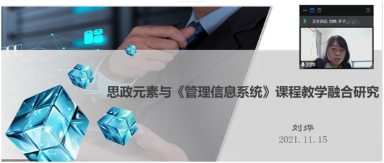 承办的本年度第91期教学沙龙活动顺利举行。刘烨老师应邀做“思政元素与管理信息系统课程教学融合研究”交流分享。100余名院内外教师参加。