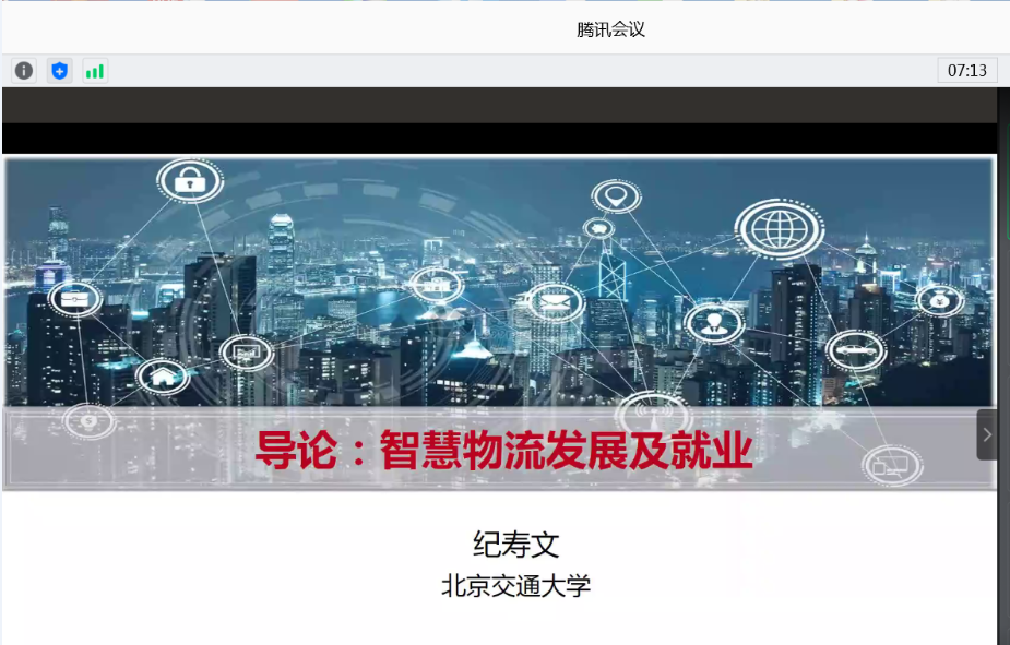 纪寿文教授首先介绍了智慧物流的内涵,指出智慧物流是现代信息技术背景下对传统物流业态的智能化升级。然后围绕智慧物流技术逻辑与人才培养,从智慧物流装备、智慧物流作业等三个方面介绍了国内外智慧物流的发展情况,最后对物流专业的就业形势和就业的能力要求做了介绍和分析。讲座结束后,纪教授就同学们在线提出的问题作了一对一回答。