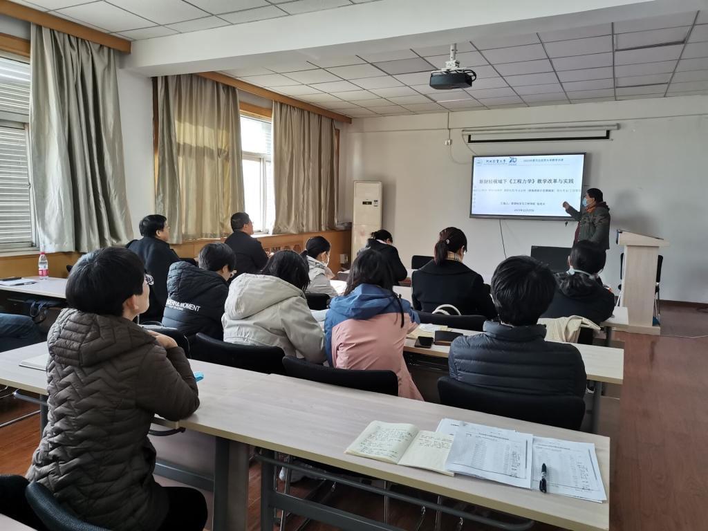《工程力学》是工程管理专业的专业核心课,具有专业知识丰富,工程问题分析逻辑性强等特点。张培兴博士结合近5年的授课经验,从课程的总体特征、教学团队建设、教学痛点、教学方法改进、课程思政融入、教学效果等几个方面做了分享,同参会的教师还就新财经特色下《工程力学》革新思路、学科交叉等进行了探讨与展望。