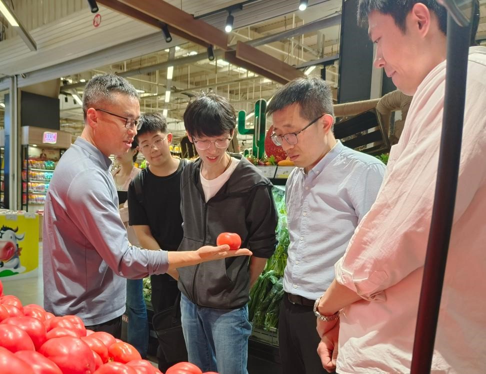 在北国超市门店内,北国商城股份公司采购总监宋京岩详细讲解了门店运营的各个环节,包括商品需求预测、订货计划的制定、促销活动设计、货架陈列及产品的摆放等。结合乐事石家庄牛肉板面味薯片为例,宋总详细介绍了如何设计营销活动,做好借势营销提升产品的销量。对于生鲜类商品,宋总提出了新鲜度和商品力的概念,强调了新鲜度决定产品商业价值,他示范了如何通过观察西红柿的外观、手感等特征来判断其新鲜程度和品质优劣,并介绍了应该采取的销售策略。