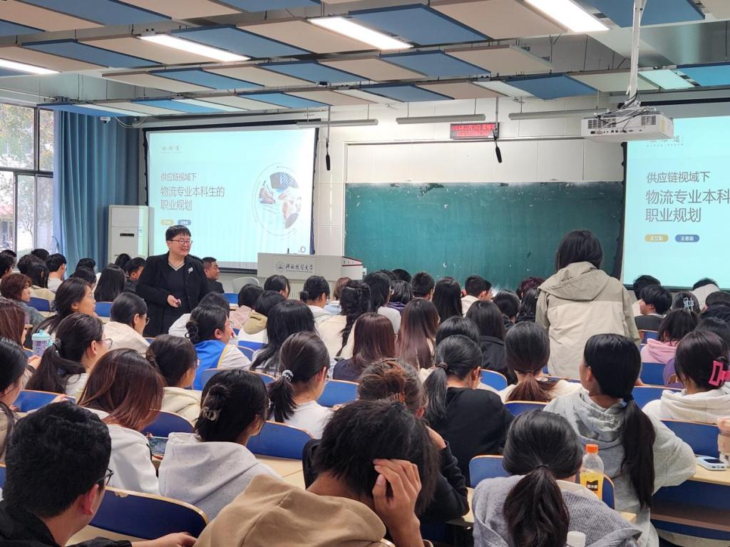 10月16日,物流系邀请物流行业专家王立如、王春潮在北三教A101教室开展《物流专家进课堂——供应链视域下物流专业本科生的职业规划》专题讲座。讲座由物流系教师陈亮主持,物流系副主任马翊华和教学秘书李斯老师组织23、24级师生200余人参加了讲座。