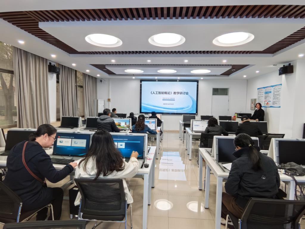 在第三教学楼C115召开《人工智能概论》课程期中教学研讨会。计算机通识课全体任课教师齐聚一堂,围绕这门全校首次开设的人工智能通识课,聚焦教学重难点,开展深入研讨,共谋课程高质量发展。