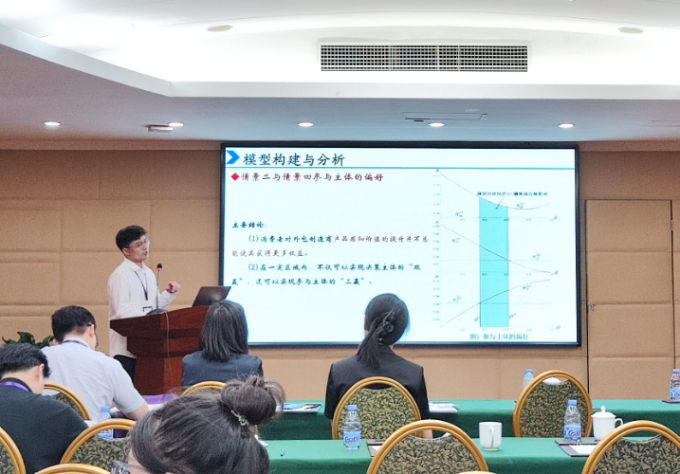 研究生史济航在分会场作了题为“考虑供应链下游竞合关系的企业专利授权策略研究”的学术分享,并同在场的专家、学者进行了交流。