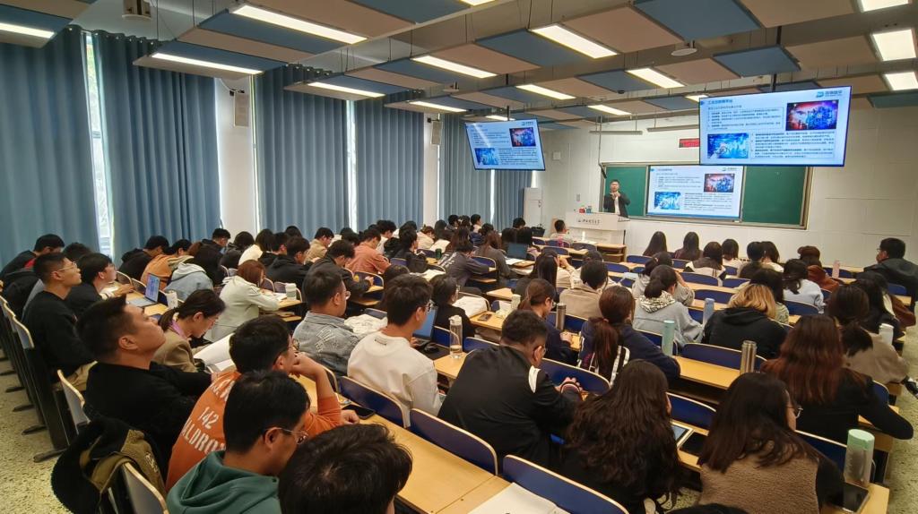 2023年11月1日下午,管理科学与工程学院大数据管理与应用系邀请河钢数字技术中心本部副总经理陈云朋,在北三教A103教室开展主题为“工业筑基 相融共创”专题讲座。大数据管理与应用系2021和2022级本科生、2023级硕士研究生以及部分大数据管理与应用系教师共100余人参加了此次讲座,讲座由大数据管理与应用系主任胡文岭主持。