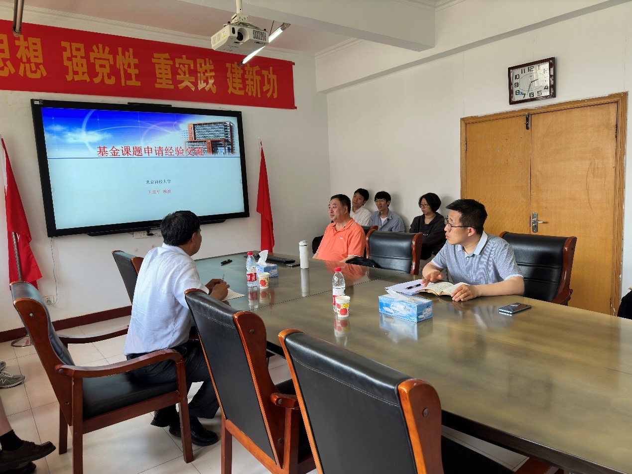 邀请北京科技大学王道平教授做国家课题申报指导与经验交流。会议由院长孙立辉主持,副院长王芹鹏以及学院青年教师20余人参加。
