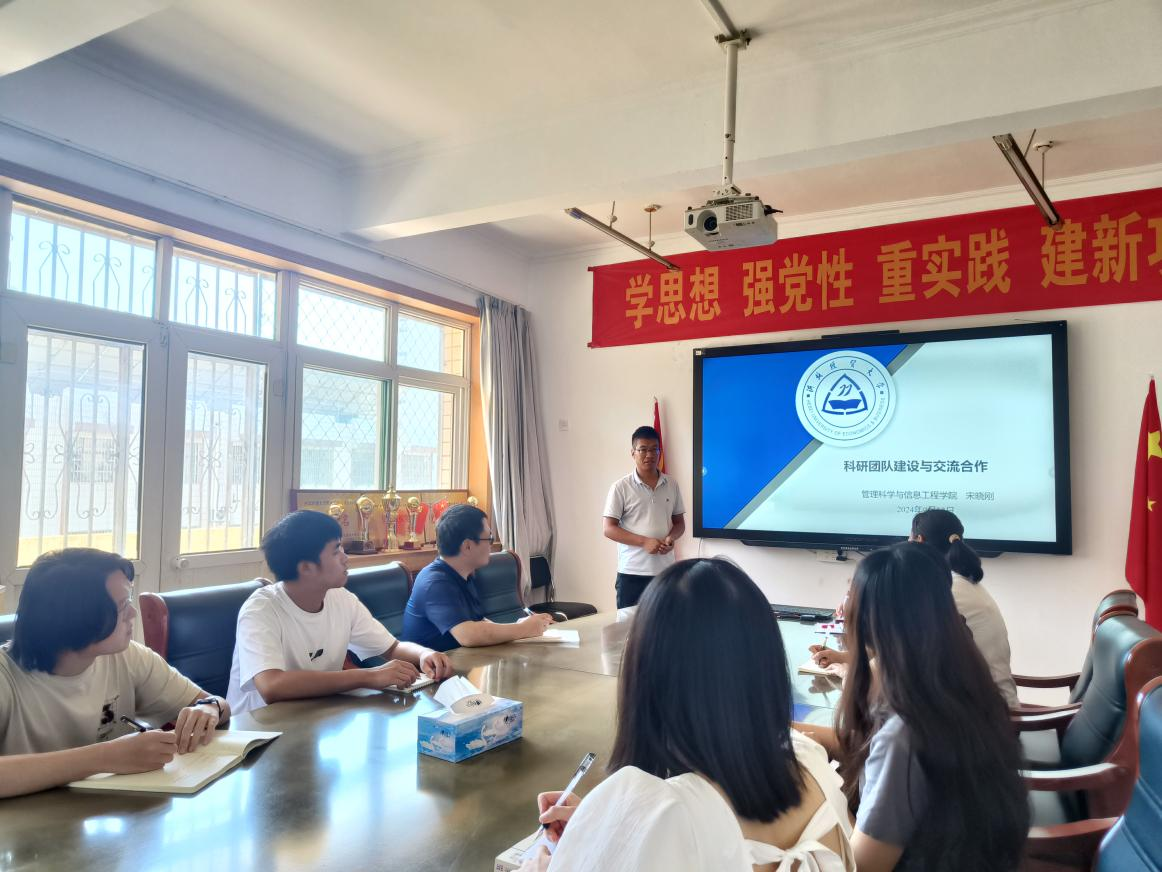宋晓刚从“对外经济贸易大学国际经济研究院简介”、“交流期间主要工作”、“他山之石”、“心得感悟”等几个方面来介绍了自己在对外经济贸易大学交流期间,有关科研团队建设、高质量科研成果产出、研究生培养、开展有组织的科研等方面的心得感悟。他指出无论是老师还是学生,都应该树立标杆,只有高标准要求自己,才能高质高量产出科研成果。他山之石,可以攻玉,与会教师积极参与讨论,探讨自己的心得和体会。