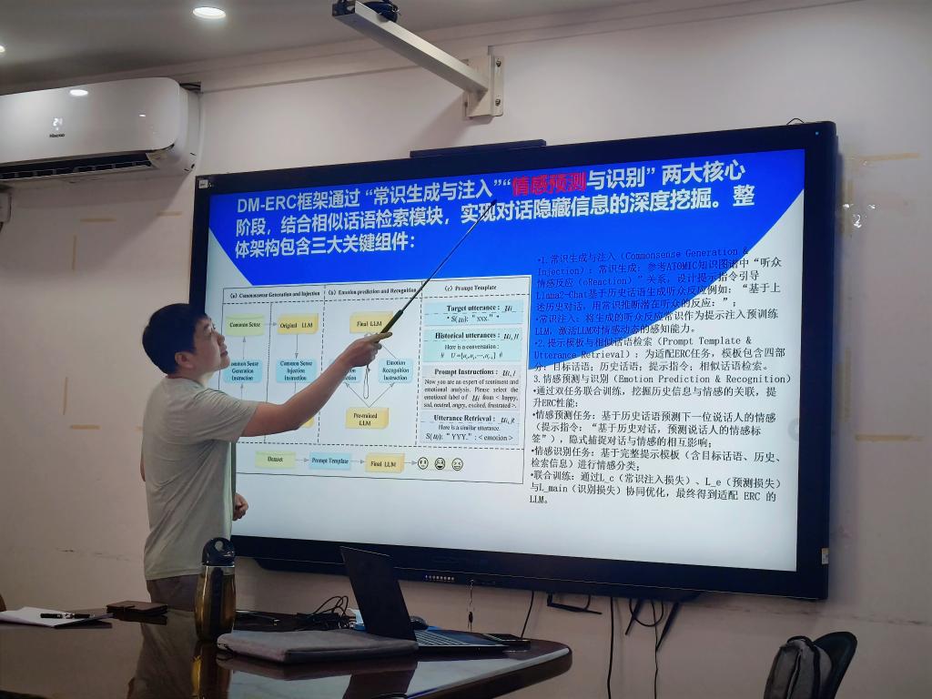 勾智楠博士在一办5楼西会议室作题为“基于生成式预训练模型的情绪感知研究”的专题报告。报告由数据科学与大数据技术系主任魏若岩副教授主持,部分教师及研究生参加。