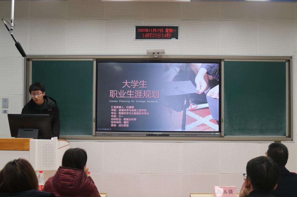 首先,由成长赛道和就业赛道的获奖同学展示他们的作品。他们的作品内容丰富多样,制定了清晰明确的职业目标与发展路径,提出了新颖的职业规划方案,充分展现了当代大学生对未来职业的深入思考和积极探索精神。在展示过程中,同学们自信从容,表达流畅,赢得了评委和观众的阵阵掌声。