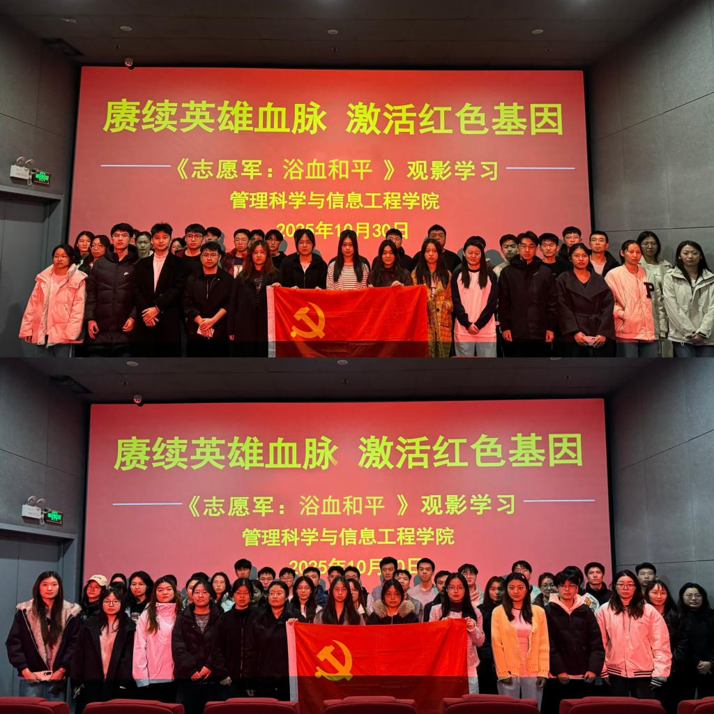 于10月30日开展“赓续英雄血脉 激活红色基因”主题观影党日活动,组织学生党员集中观看爱国主义教育影片《志愿军:浴血和平》。
